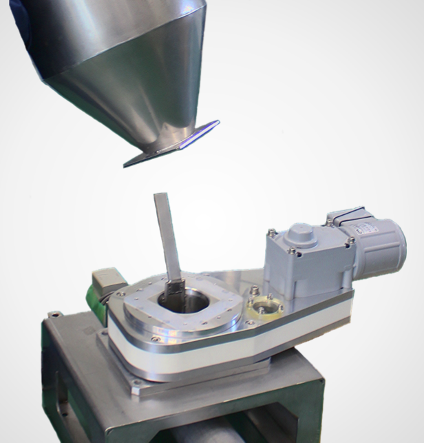 ホッパーと供給先の装置の間にこのブリッジブレーカーを入れることで、撹拌羽根がブリッジを壊し、装置へ滑らかな供給を促します
